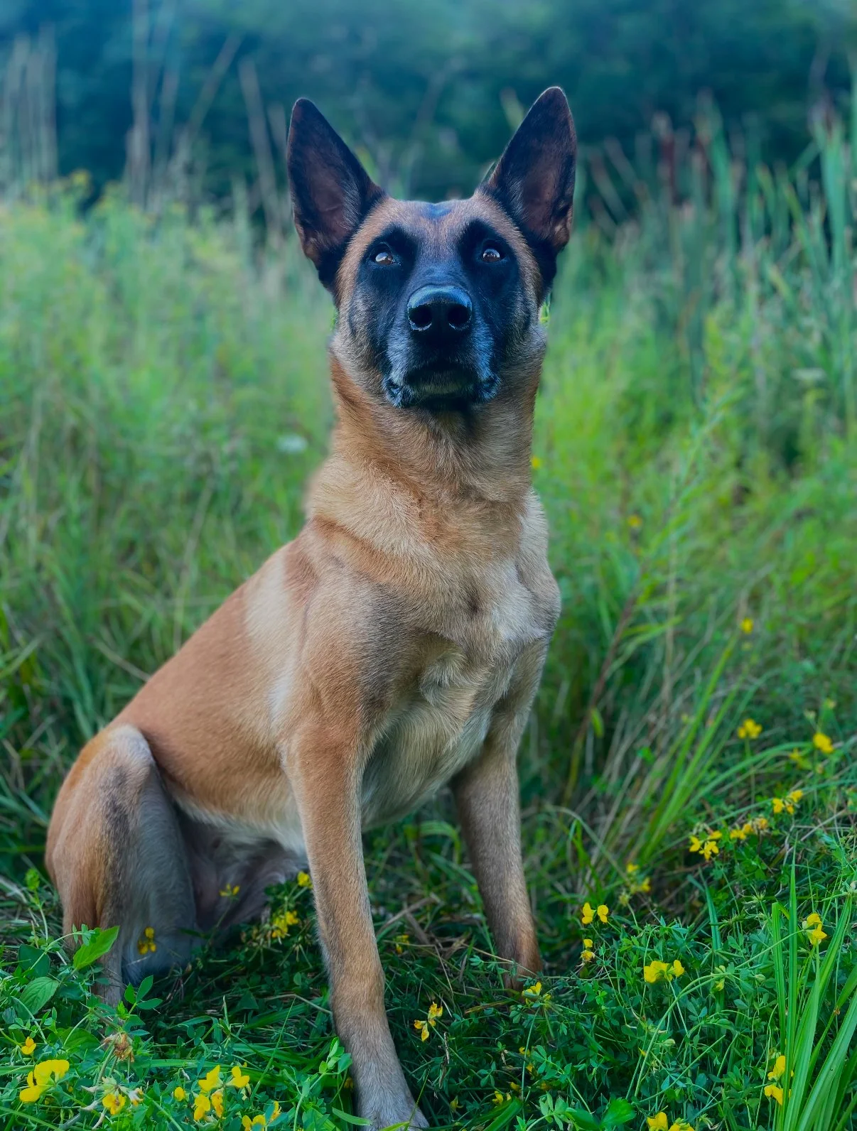 Kimber, a Belgian Malinois, is owned by Kayla, who had the privilege of watching her litter grow from birth to 8 weeks old. Kayla instantly knew that the little purple-colored pup was the one for her! Kimber assists with group classes at Taylor’s K9 Training. When she’s not working, you can find her enjoying her favorite activities, like chewing on her red rubber antler toy, going for walks, engaging in protection work, and dock diving.