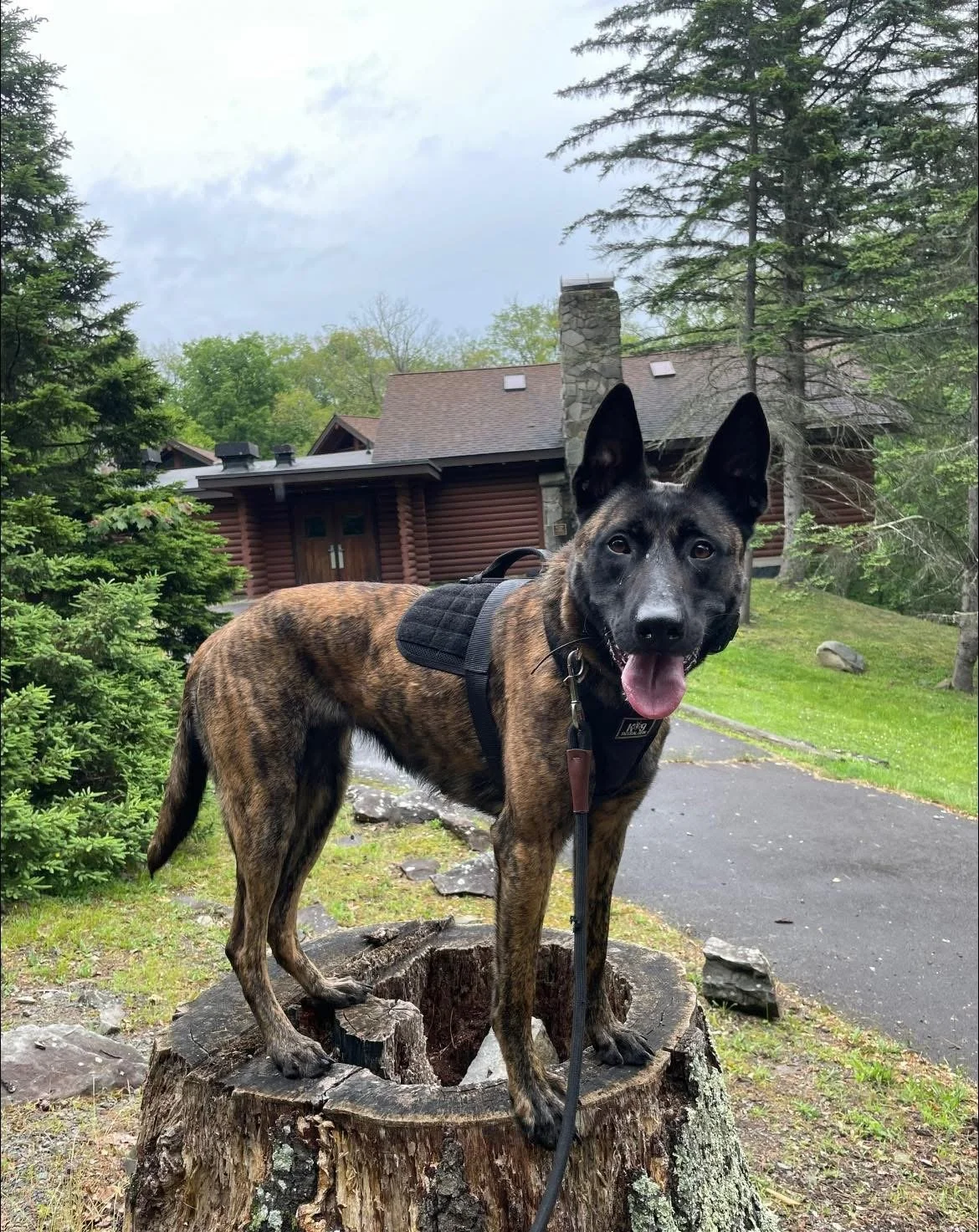 Lisse, a Dutch Shepherd, has been handled by Taylor since she was a puppy, but she officially became Taylor's dog when she was a year and a half old. Lisse participates in group classes, walks, and lessons as a demo dog for Taylor’s K9 Training. However, she prefers her hobbies over her work as a demo dog, so you’re more likely to see her enjoying hikes, lure coursing, playing disc, and doing detection work.