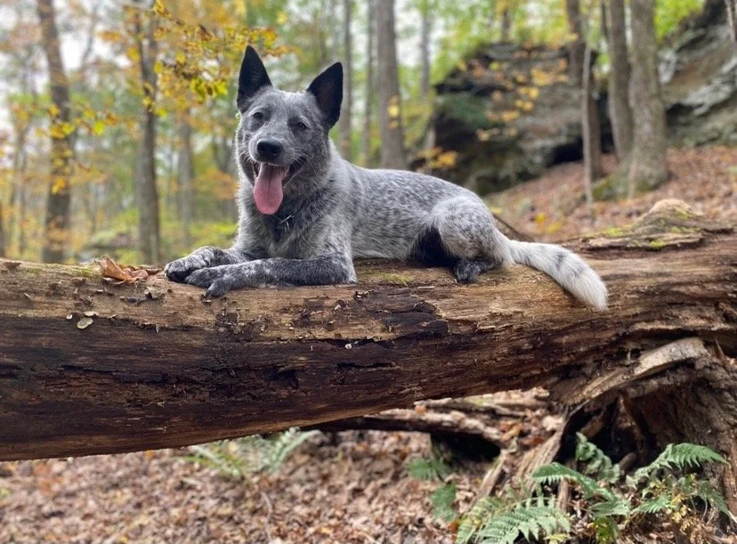 An Australian Cattle Dog, Hero has been with Taylor since he was around 4-5 months old. Before finding his forever home with her, he had two other owners. Now, Hero serves as the demo dog for Taylor’s K9 Training. When he’s not working, you can find him enjoying walks, dock diving, lure coursing, swimming, or just relaxing with a nice nap on the couch.